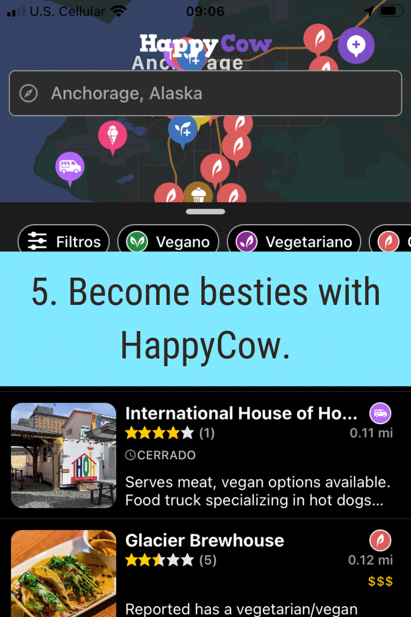 HappyCow is a great website that allows you to find vegan and vegetarian options while you travel or just locally where you’re from. That made me realize that Anchorage has way more vegan options than I thought. Remember to scope out the restaurants’ websites because HappyCow’s restaurant information isn’t always current.