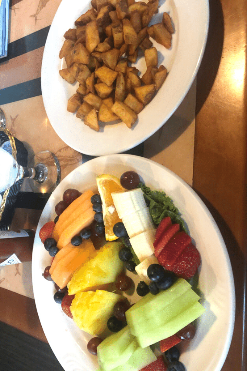 While in Anchorage, we stayed at The Lakefront Anchorage Hotel. We ate breakfast at our hotel’s restaurant, The Flying Machine. There weren’t any vegan options besides a side of fruit. I ordered a fresh fruit plate that came with more fruit and yogurt. I gave the yogurt to my mom and got some extra fruit from my uncle’s fruit side.