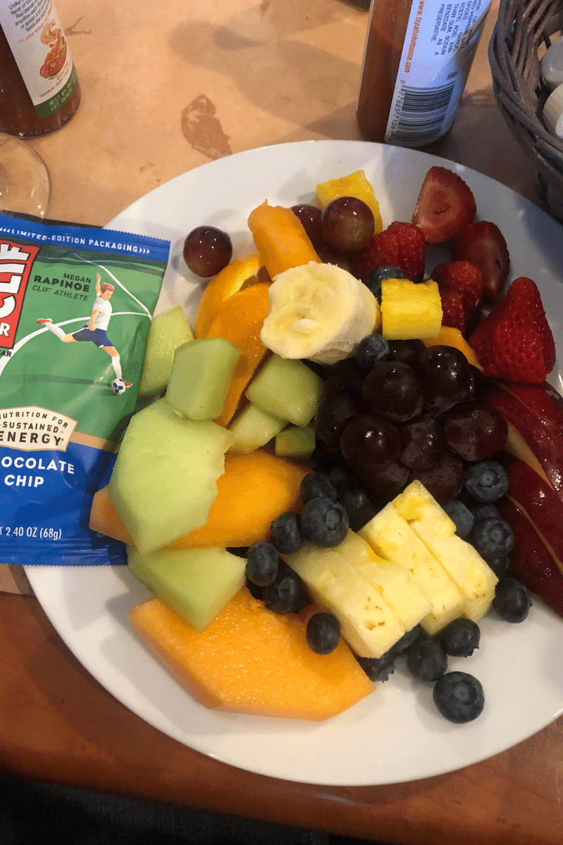I also brought one of the chocolate chip Clif bars I had in my bag. Overall, they gave me way more fruit than expected, and it was all super ripe and good. That’s abnormal for fruit dishes because something’s usually spoiled or tastes weird because of being out of season. I hope tomorrow’s breakfast will be just as good as today’s.