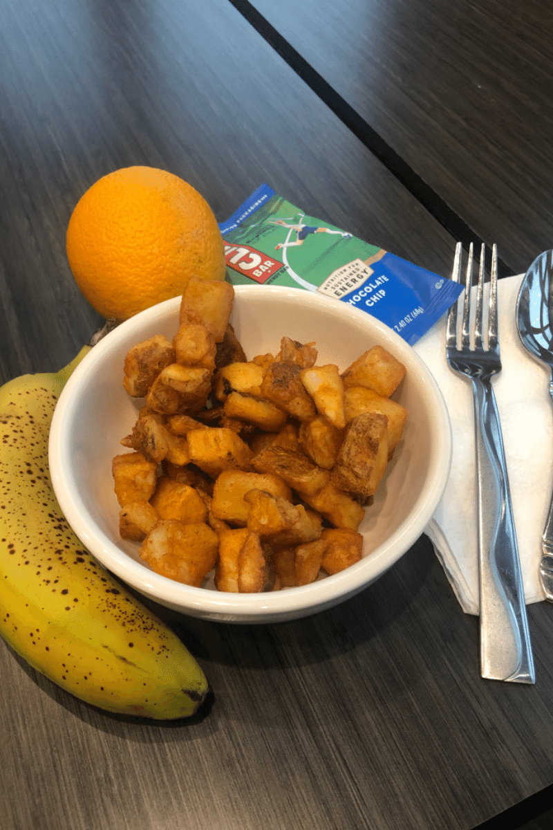 The hotel had a decent breakfast. The breakfast potatoes were good because they were made with oil instead of butter. I also had a banana.