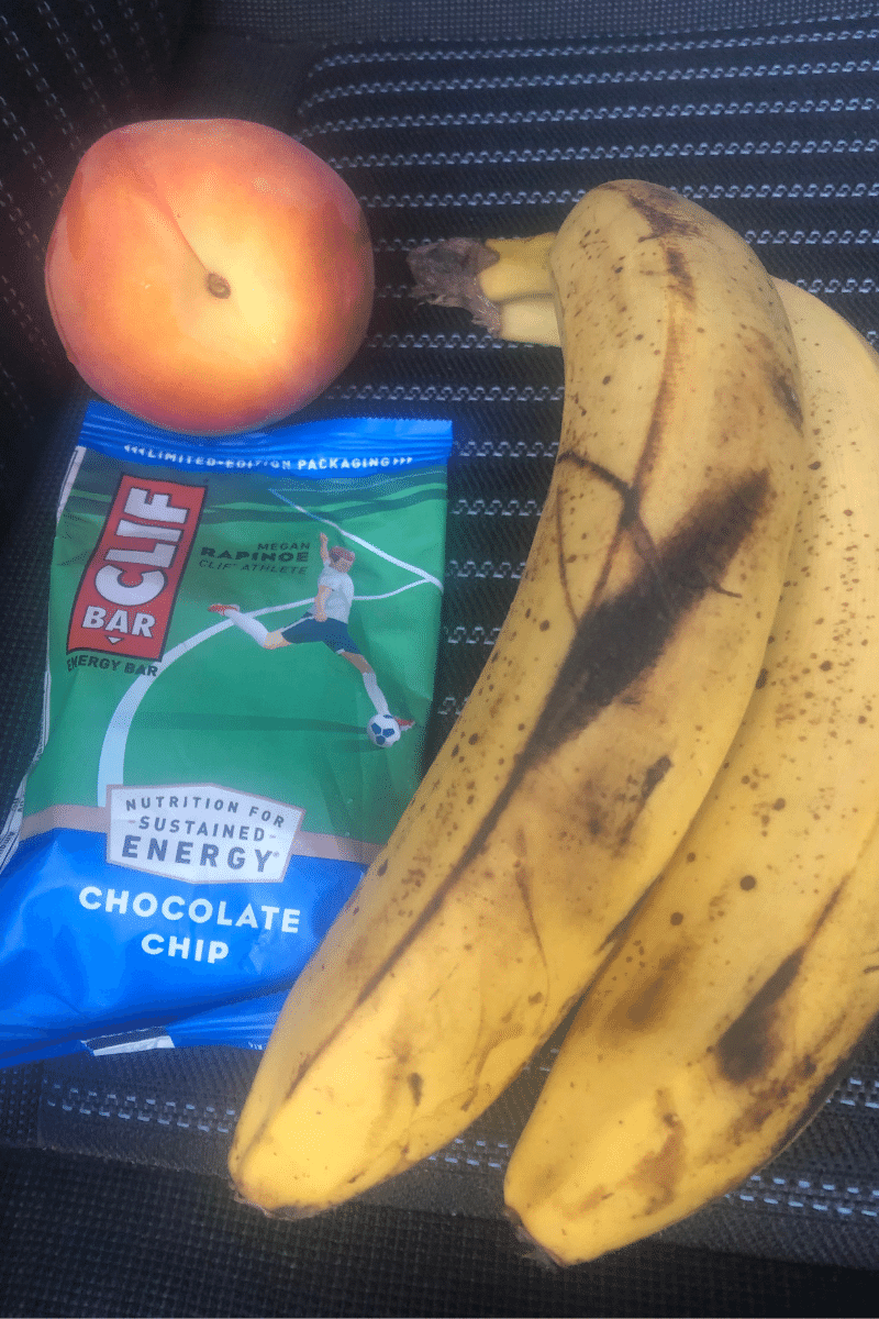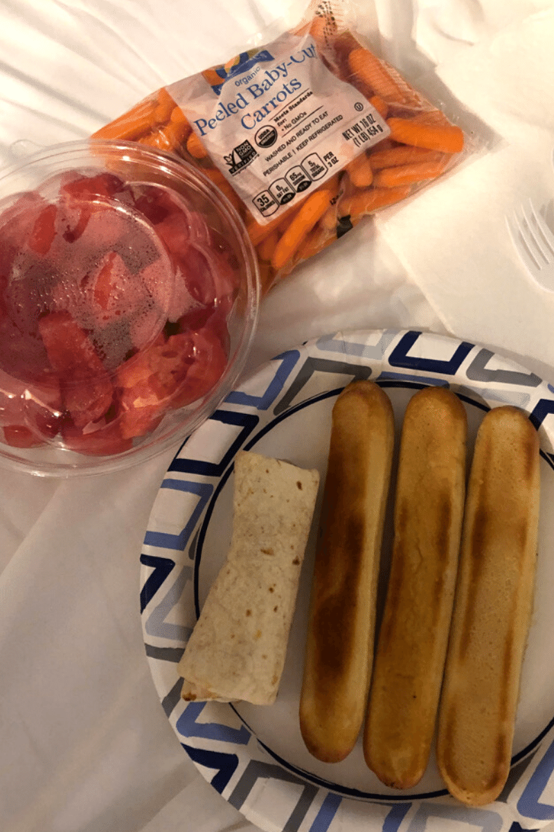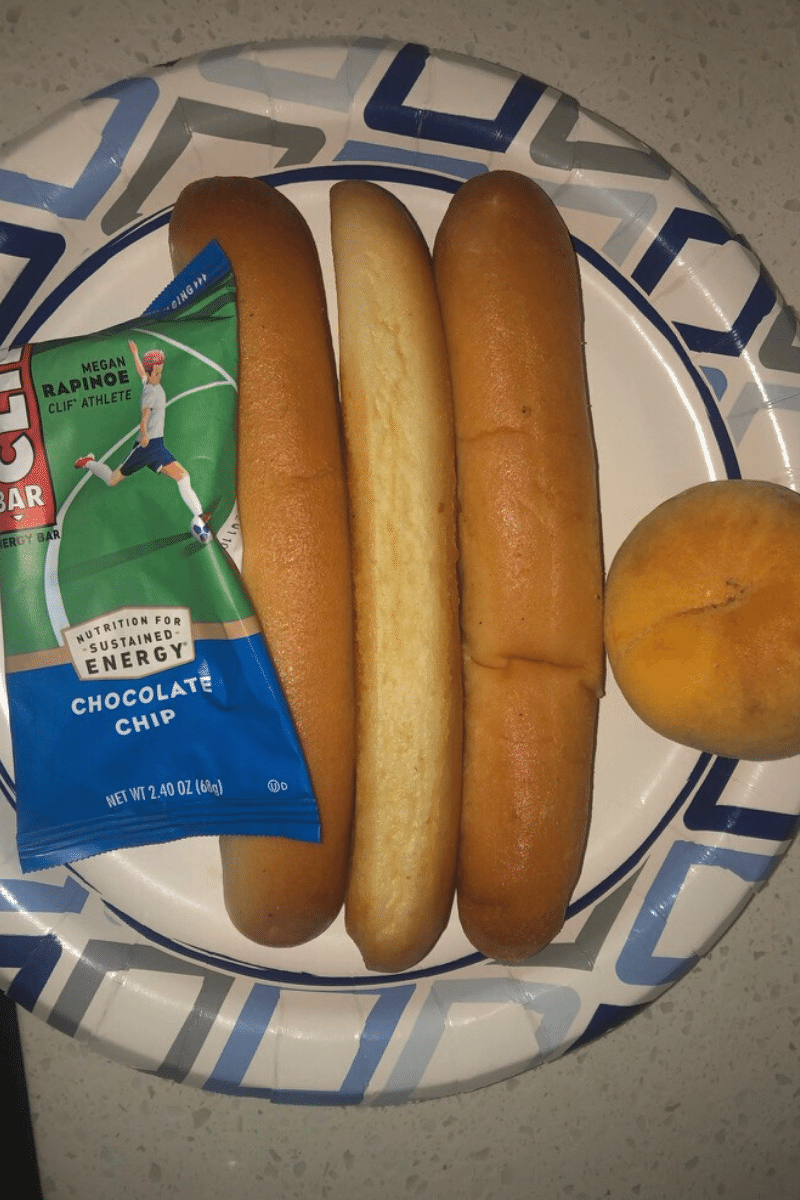 Before we headed to the airport, I had three leftover Olive Garden breadsticks, a chocolate chip Clif bar, and a flat peach for breakfast. I was happy we requested a microwave the day before, or the breadsticks would have been cold.
