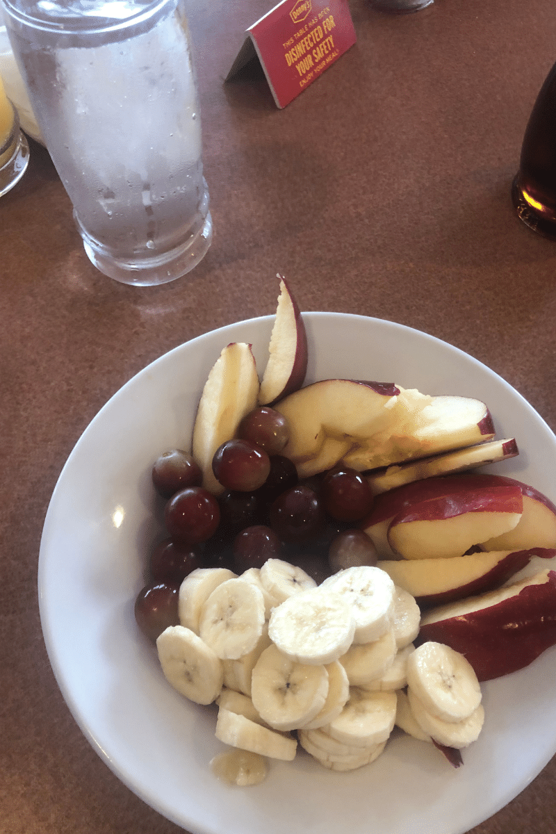 My dad and uncle got me a fruit cup from the hotel for breakfast, but I didn’t eat it because it spoiled before I started eating it.