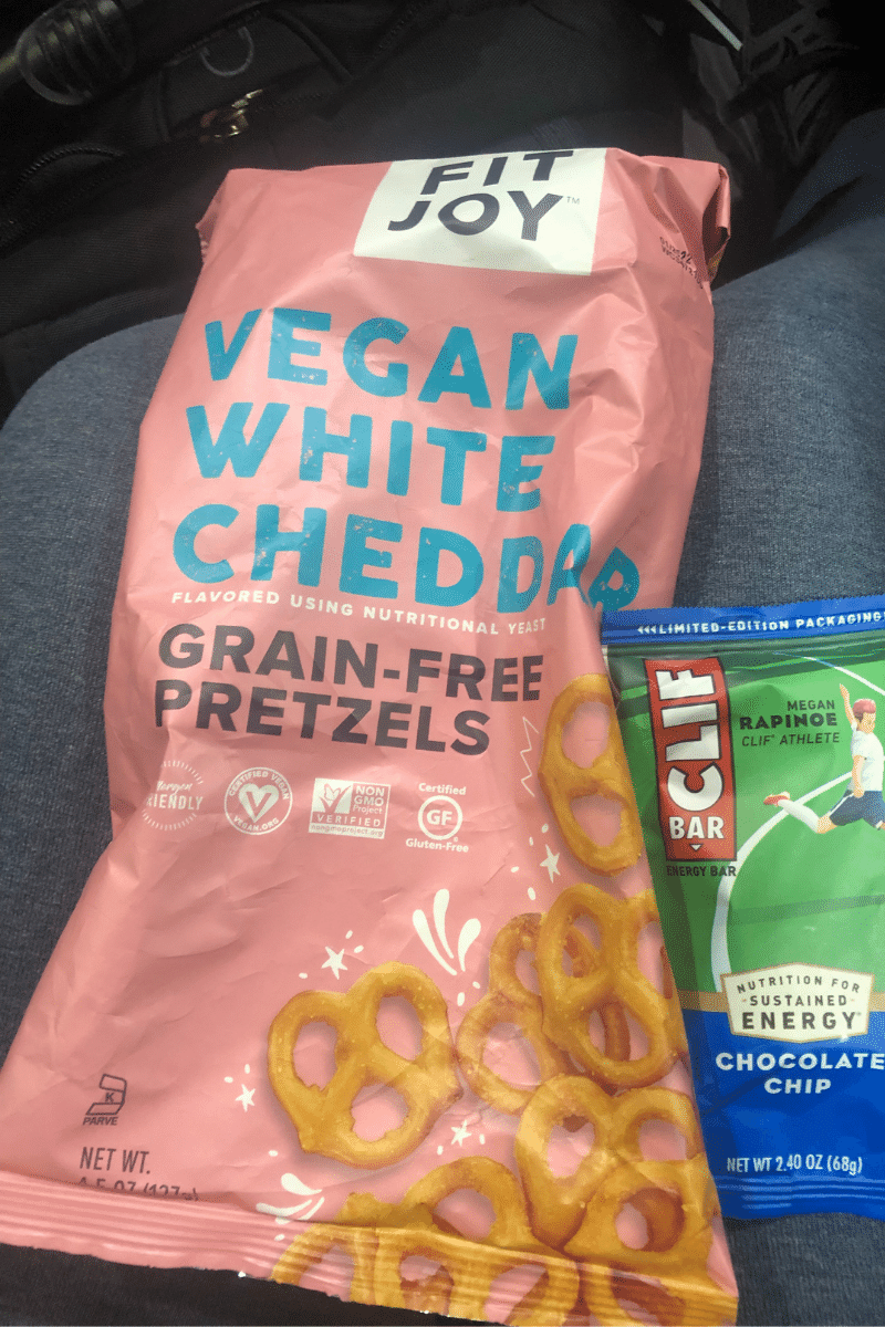Many airports don’t have vegan options besides whole fruit and overpriced sliced veggies, depending on where you’re flying out. Come on, airports. I want some warm food in my stomach before I travel or something better than that.