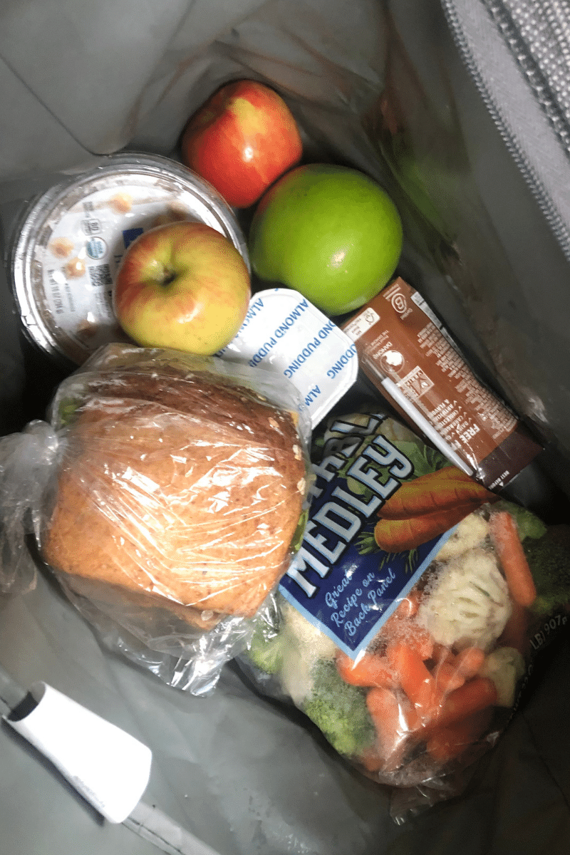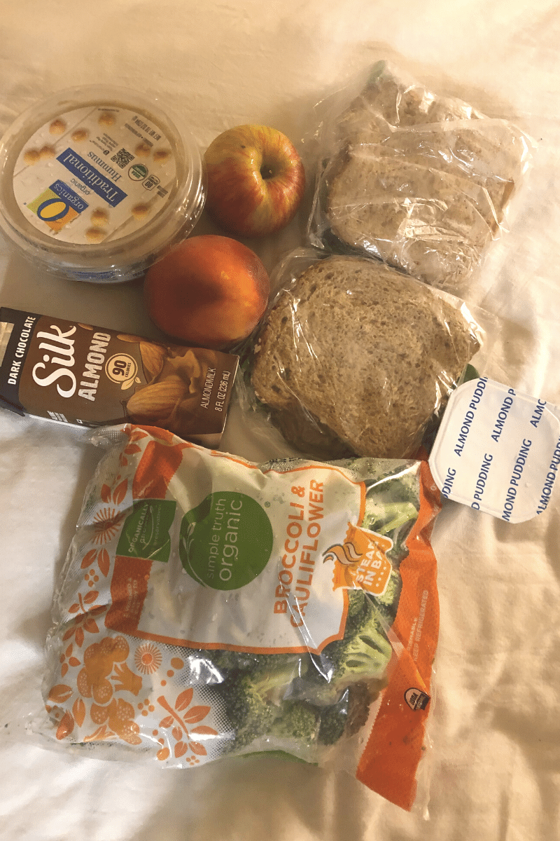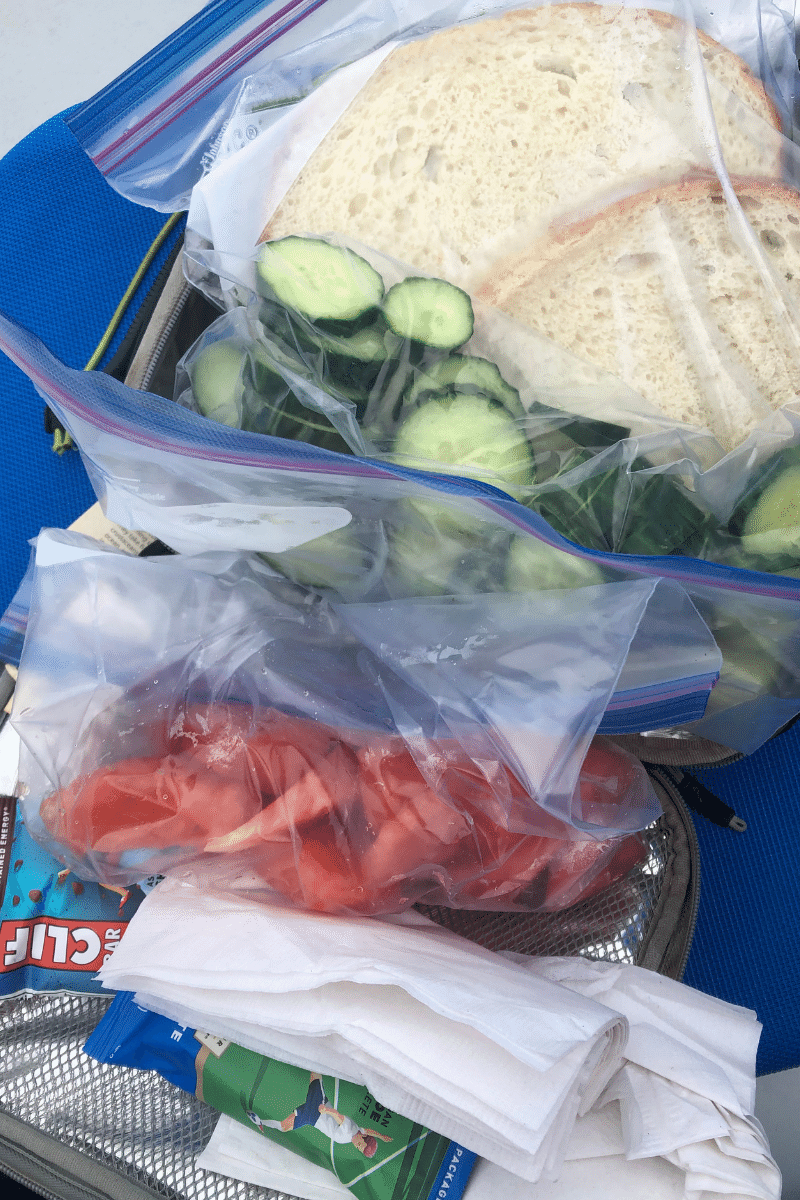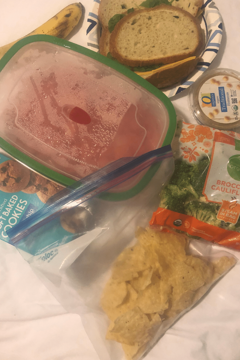 When you have to eat so many sack lunches because of the lack of vegan options at dining places, I didn’t have enough refrigerator space to put all my stuff in the fridge, let alone share it with my sisters. Then, I hardly had any room for food in my cooler on travel days, so I tried putting ice in gallon Ziplocks to keep my extra food cold in regular reusable plastic shopping bags without any success.