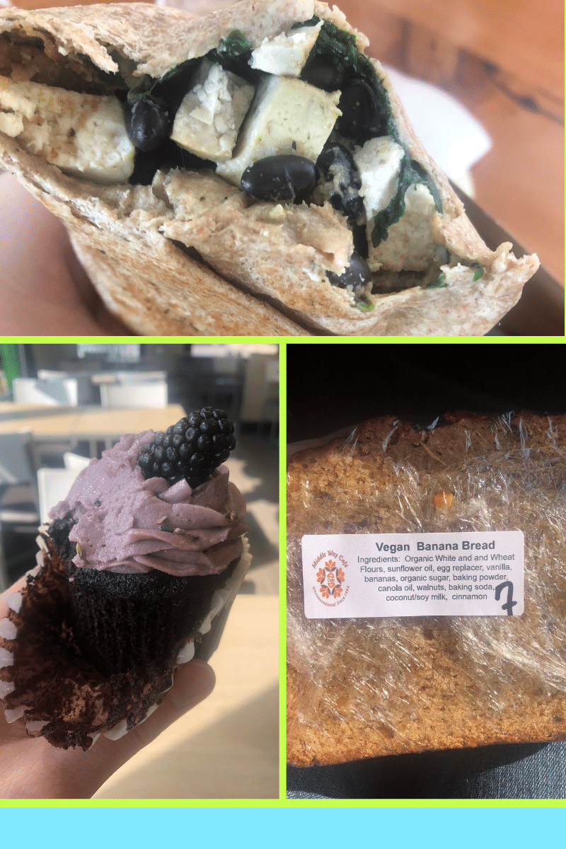 My dad found the Middle Way Cafe online and thought it would be a good option because it had vegan options, but he was mistaken. I had the vegan breakfast burrito, a blackberry lavender cupcake, and banana bread.