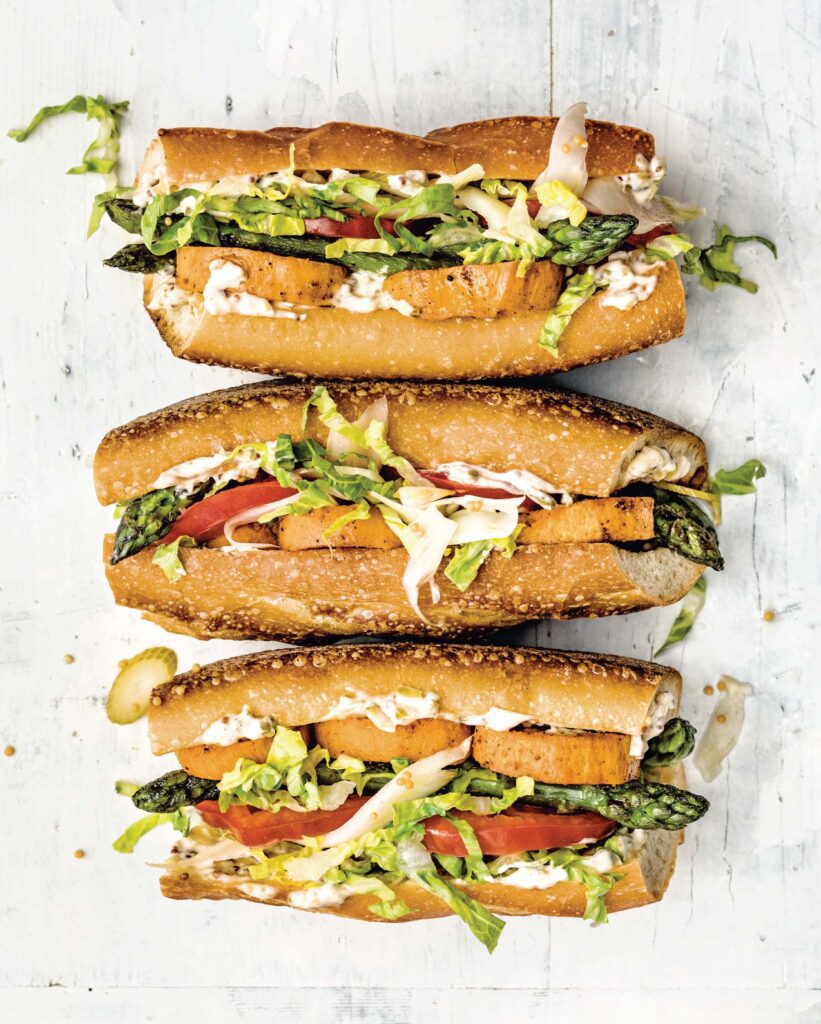 Get the exclusive vegan Roasted Sweet Potato and Asparagus Po’boy recipe from Bryant Terry’s new cookbook, Vegetable Kingdom.