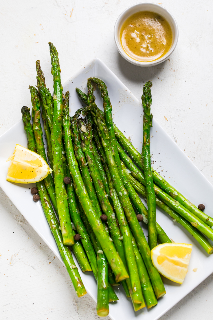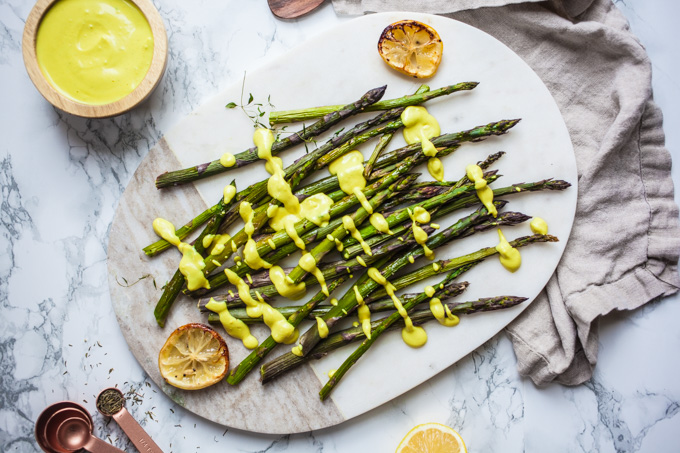 27. Roasted Asparagus With Hollandaise Sauce I’m very picky about my condiments. Nevertheless, I recommend you try this vegan roasted asparagus with Hollandaise sauce recipe from Carrots & Flowers.