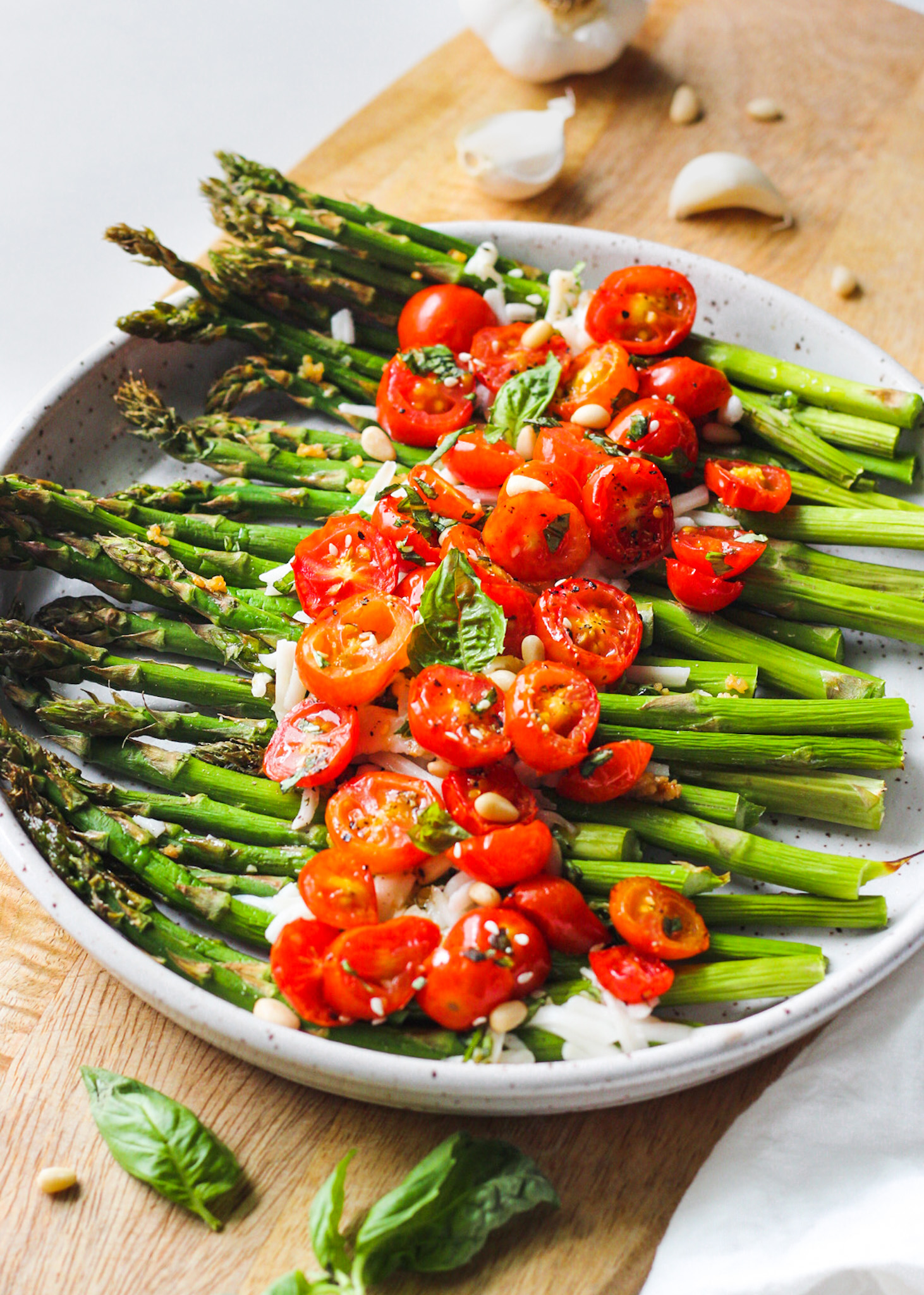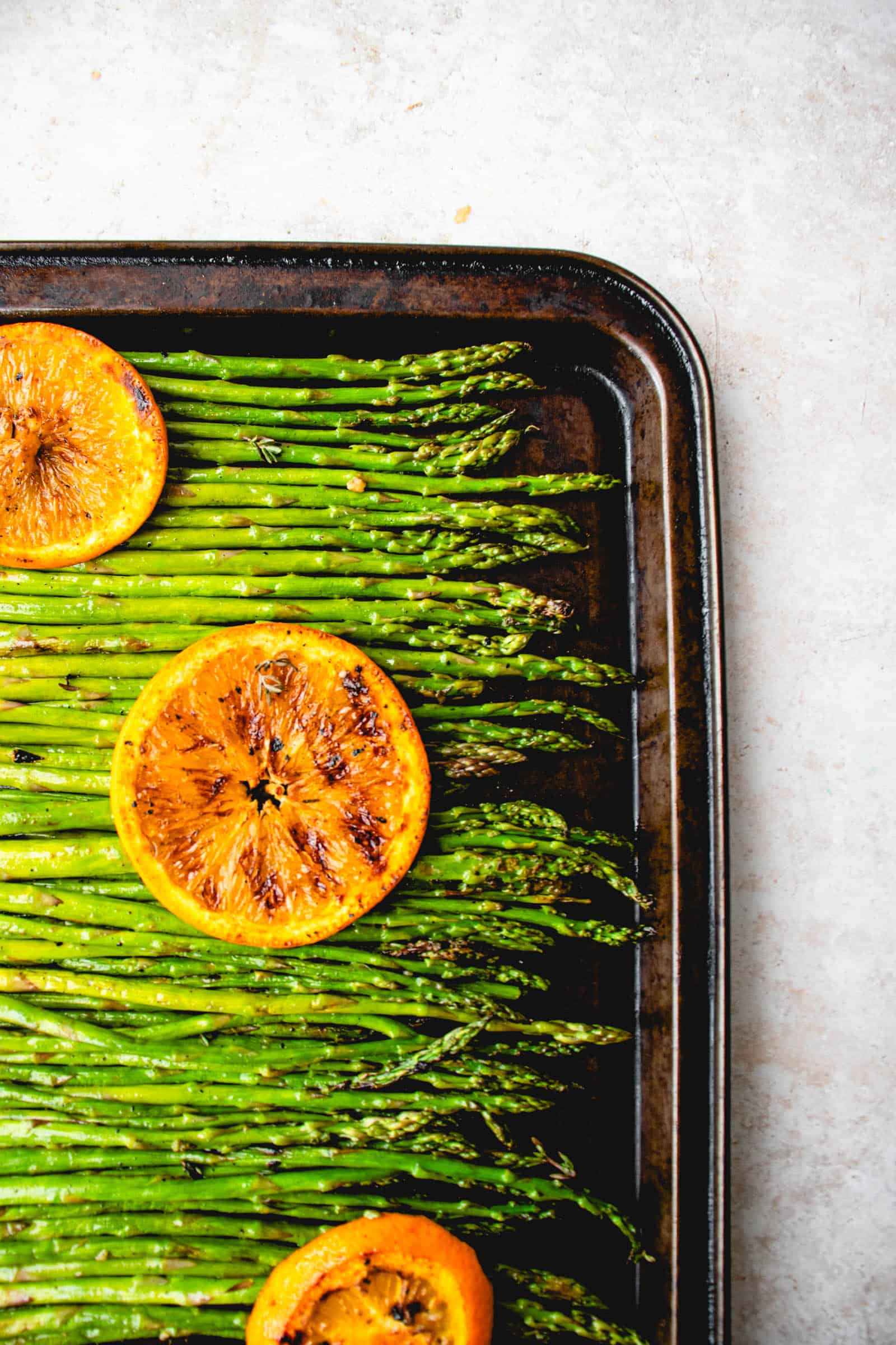 5. Oven-Roasted Asparagus I want you to try a new flavor combo: asparagus and citrus. Here is a flavorful vegan roasted asparagus dish from Heal Me Delicious