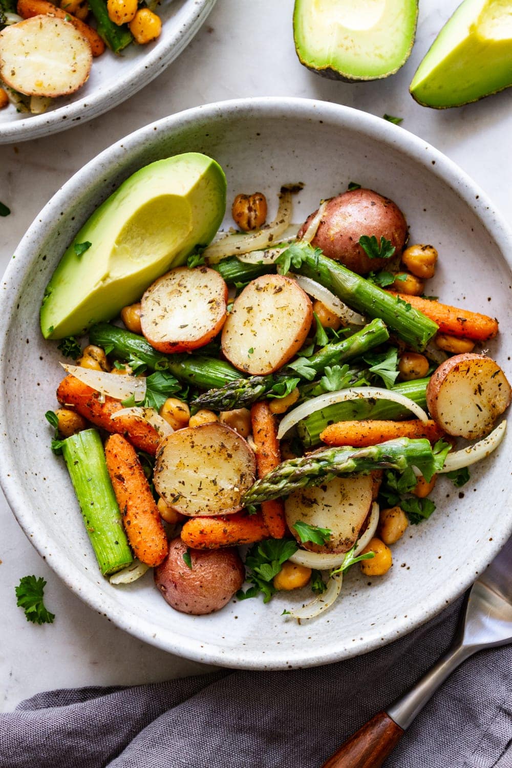 Vegan Sheet Pan Dinner | Herbed Potato, Asparagus & Chickpeas