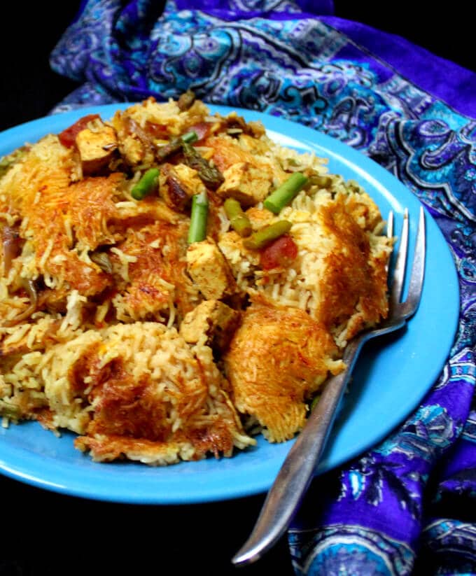 Persian Rice with Saffron and Asparagus. The rice is golden, delicious, fragrant and infinitely appetizing! Asparagus adds a fresh, seasonal flavor.