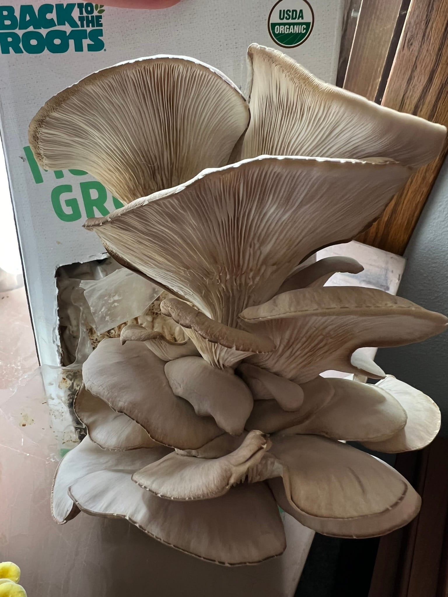 My pearl oyster mushroom grow kit was a success. Even though it advertises to be ready to harvest in 10 days, the pearl oyster mushrooms were pretty big by Day 5 and full-grown on Day 8.