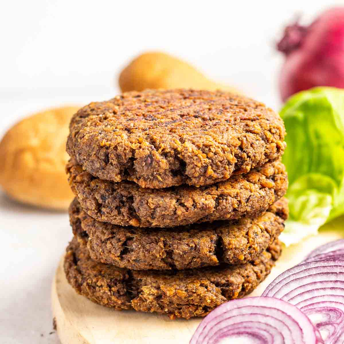 Plant-based burgers or patties (black bean, lentil, etc.)