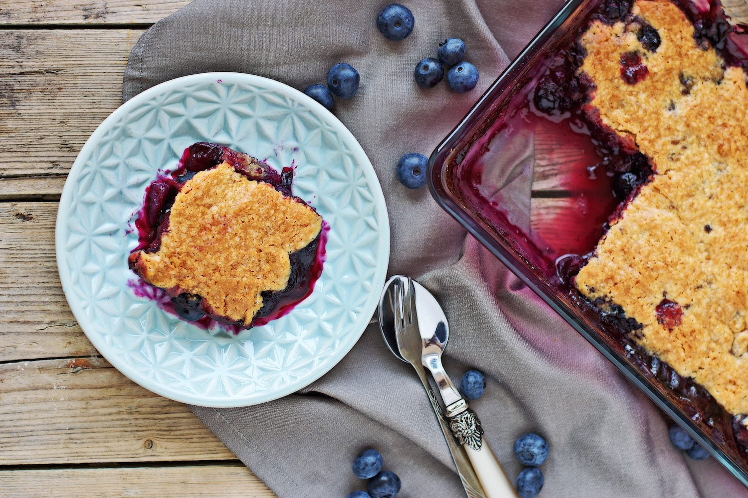 Blueberry buckle is the most famous version, especially in New England, where it's a summer staple served warm with a bit of ice cream or plant-based whipped cream. If this sounds good, try blueberry buttermilk buckle from Liv B.