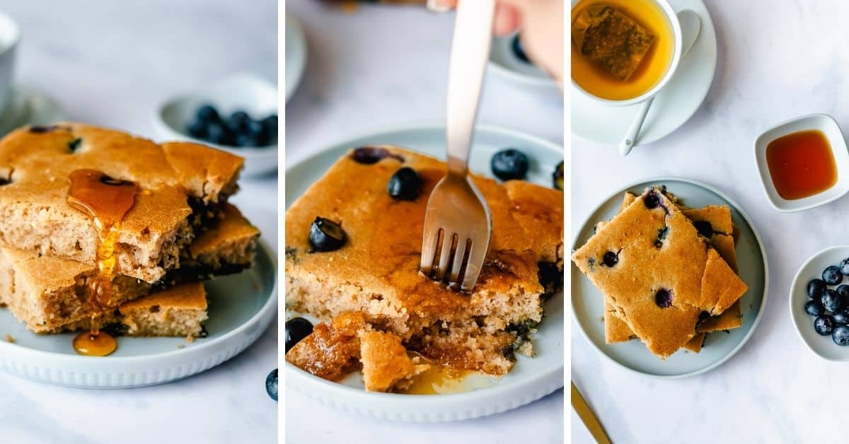 If you prefer the taste of pancakes without the mess, sheet pan pancakes would be perfect for you. Besides, when they taste super good, no one is going to care if you flipped or baked them.