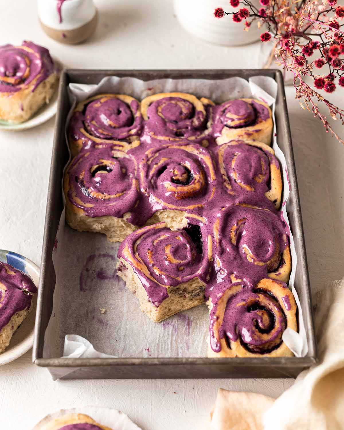 If you're open to trying cinnamon rolls with a fruity twist, bake blueberry cinnamon rolls from Rainbow Nourishments.