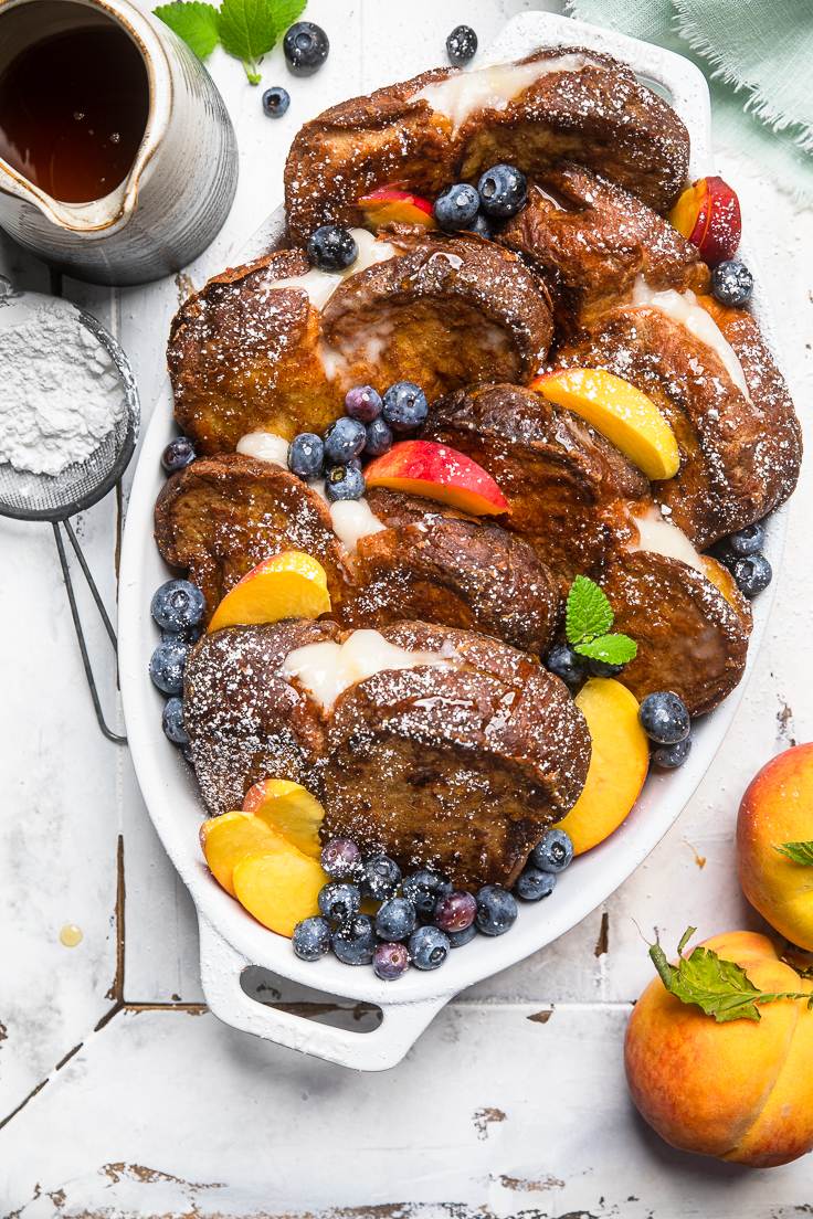Up for the challenge? Make stuffed French toast with peaches and blueberries from Make It Dairy Free.
