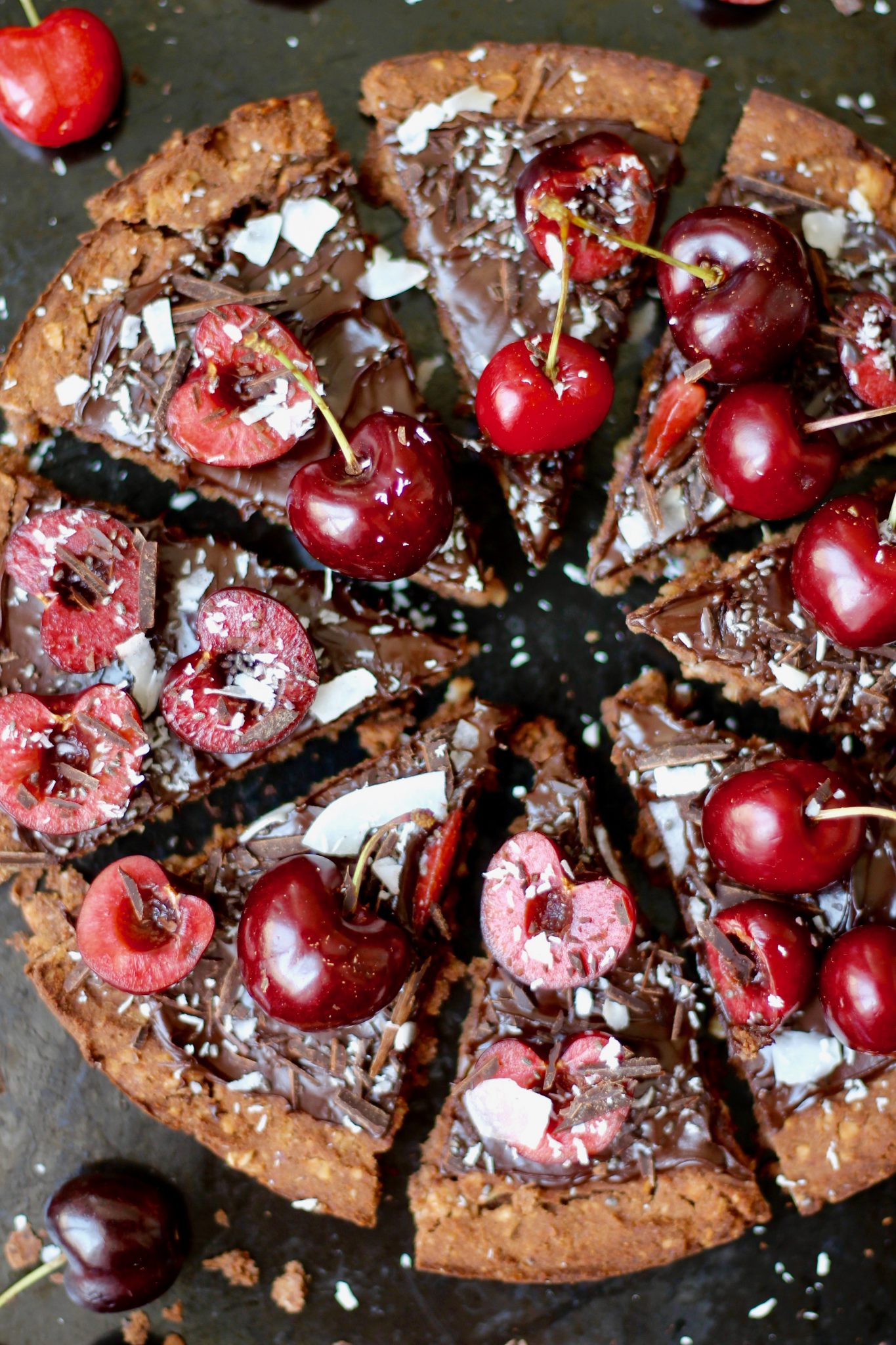 Chocolate Cherry Pizza Tart | Vegan + Gluten Free | Two Spoons