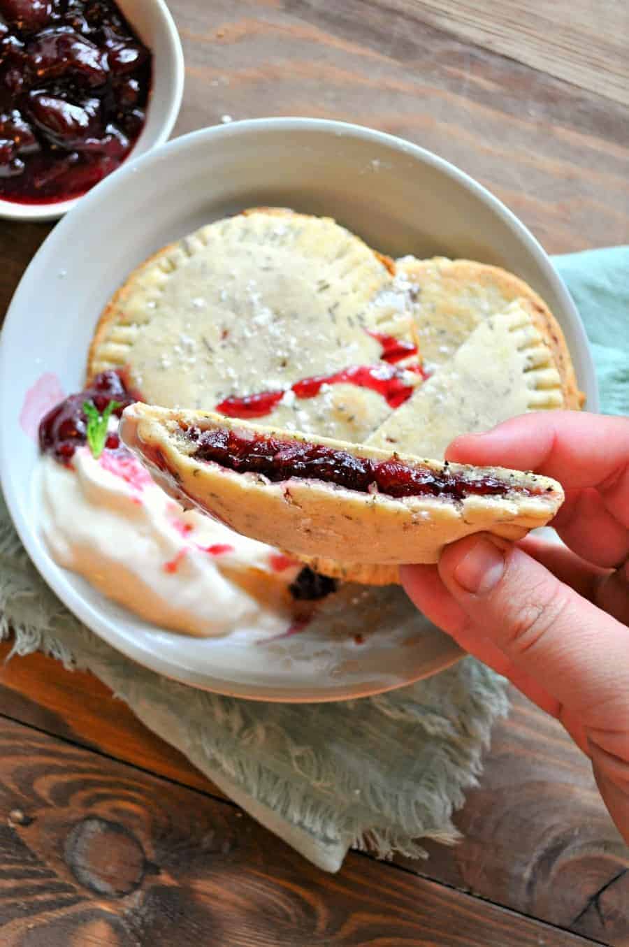 22. Cherry Thyme Hand Pies Here's an excellent recipe if you like Smucker’s Uncrustables® like my youngest sister. Make some cherry thyme hand pies , thanks to Rabbit and Wolves.
