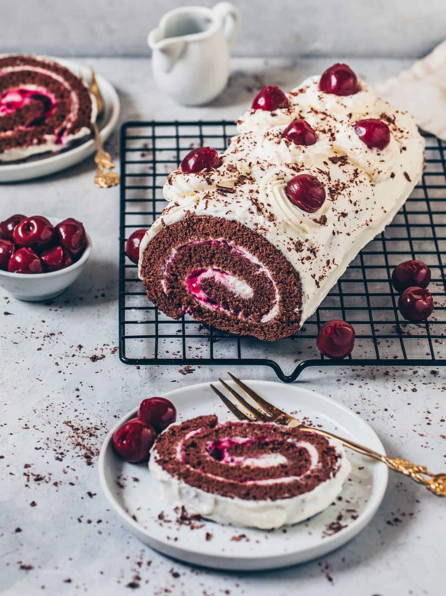 Black Forest Cake Roll (Vegan Swiss Roll)