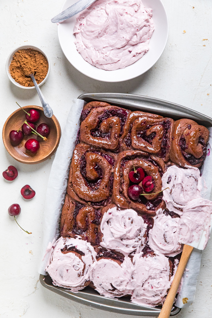 Dark Chocolate Cherry Vegan Cinnamon Rolls