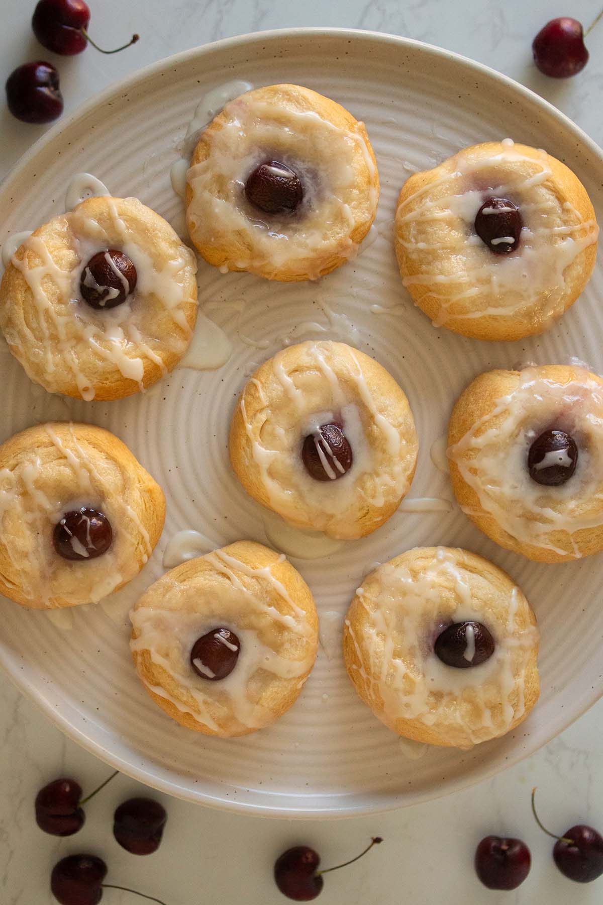 6. Cherry Cheese Danish A Danish pastry sounds good right now. Try some vegan cherry cheese Danish pastries from Glue & Glitter.