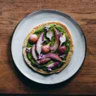 Beet greens are the leafy tops of the beetroot—often overlooked but totally edible and delicious. They have a tender texture and mild, earthy flavor that becomes mellow when cooked.