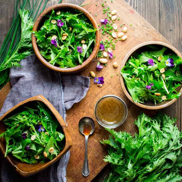 Mizuna is often found in spring mixes and Asian-inspired salads. It’s also great in wraps, grain bowls, or lightly sautéed in warm dishes like stir-fries and soups.