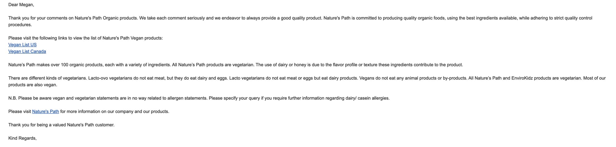 Years ago, I got upset when I learned that Nature's Path sold vegetarian Love Crunch Organic Dark Chocolate & Red Berries Granola Bars, even though the granola itself is vegan.