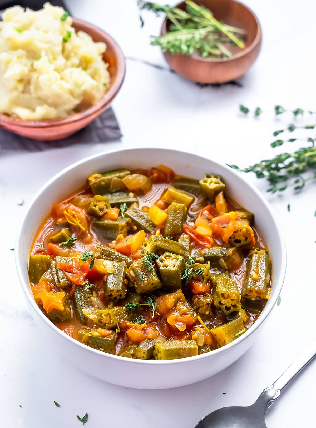 Vegan Stewed Okras and Tomatoes - Healthier Steps