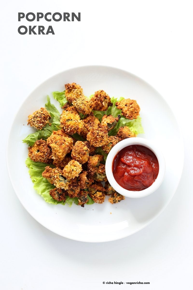 13. Popcorn Okra I’m used to seeing popcorn chicken and shrimp, but here’s something a little different. Have popcorn okra from Vegan Richa.