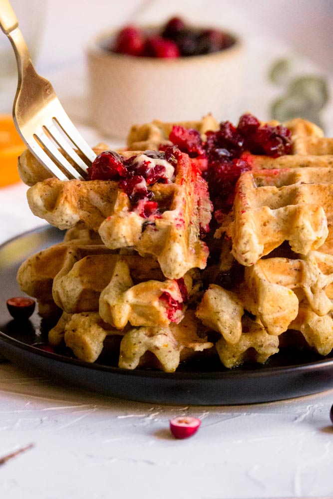 I bought a waffle iron because I wanted to make some vegan waffles at home. Even though I haven’t gotten around to using it yet, I can’t wait to try these cranberry orange waffles from Thank You Berry Much.