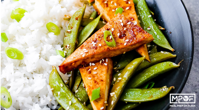 24. Orange Sesame Tofu and Snap Peas Tofu can be more things besides spongy and is eaten by people who aren’t vegetarian or vegan. If you’re open to it, prep some tofu and snap peas from Meal Prep on Fleek.