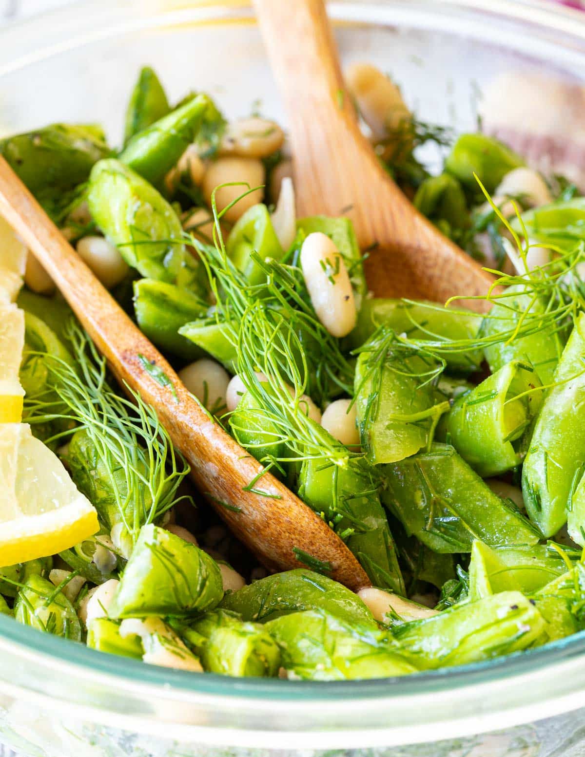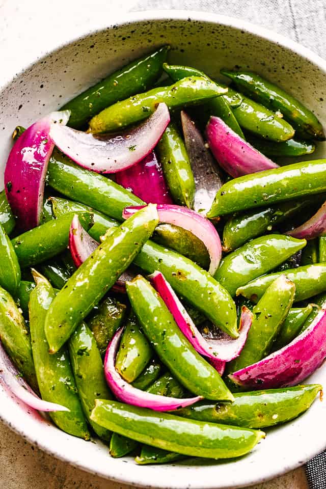Fresh, vibrant, crunchy and delicious Sugar Snap Pea Salad with a fresh and zingy lemon, mustard, garlic vinaigrette. It makes a great warm-weather side or light meal.