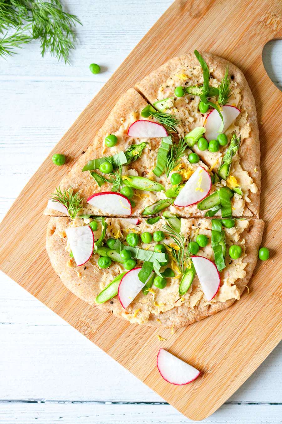 Spring Flatbread with Asparagus, Peas, and Herbs Recipe - Well Vegan