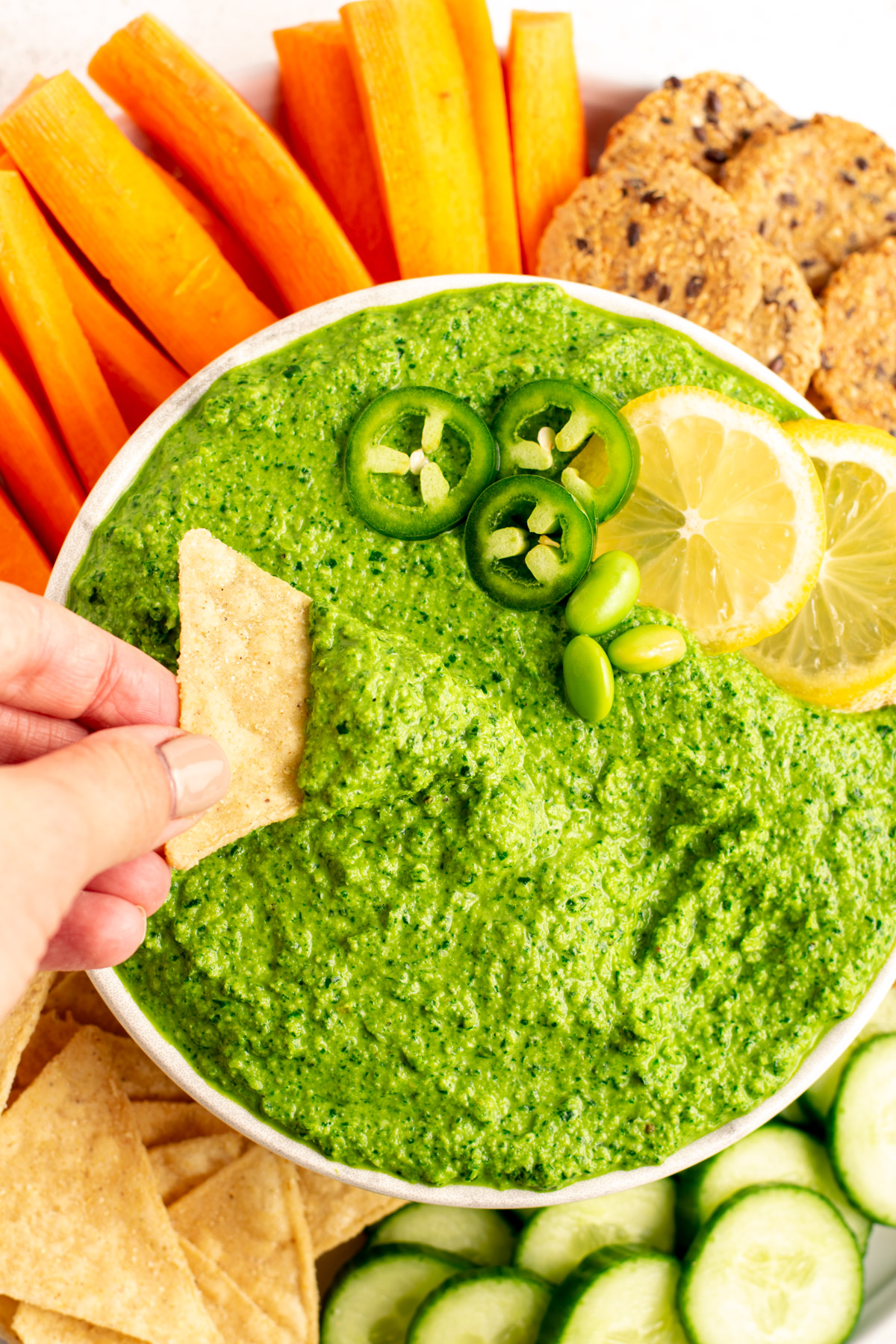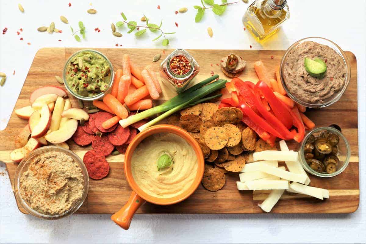 - Something creamy: Think hummus, guacamole, vegan tzatziki, or a dairy-free cheese spread for dipping and layering.