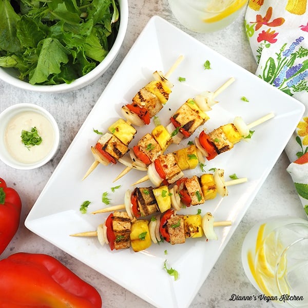 26. Grilled Tofu Skewers with Pineapple, Onion, and Pepper Kebabs (or kabobs, depending on where you're from) are great for summer barbecues because they're very customizable. One idea is to make these tofu skewers from Dianne's Vegan Kitchen.