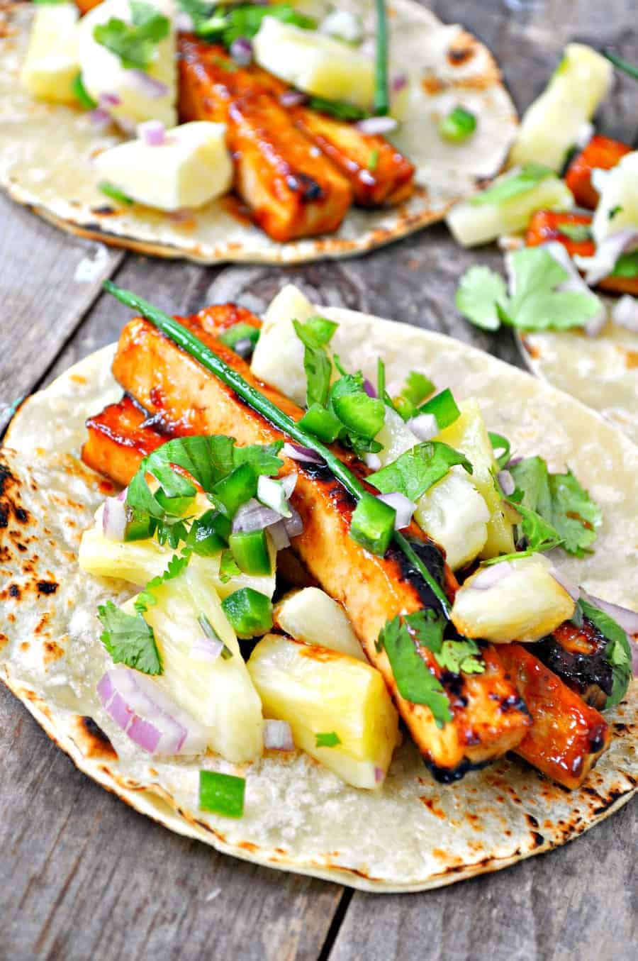 Vegan Teriyaki Tofu Tacos with Roasted Pineapple Salsa