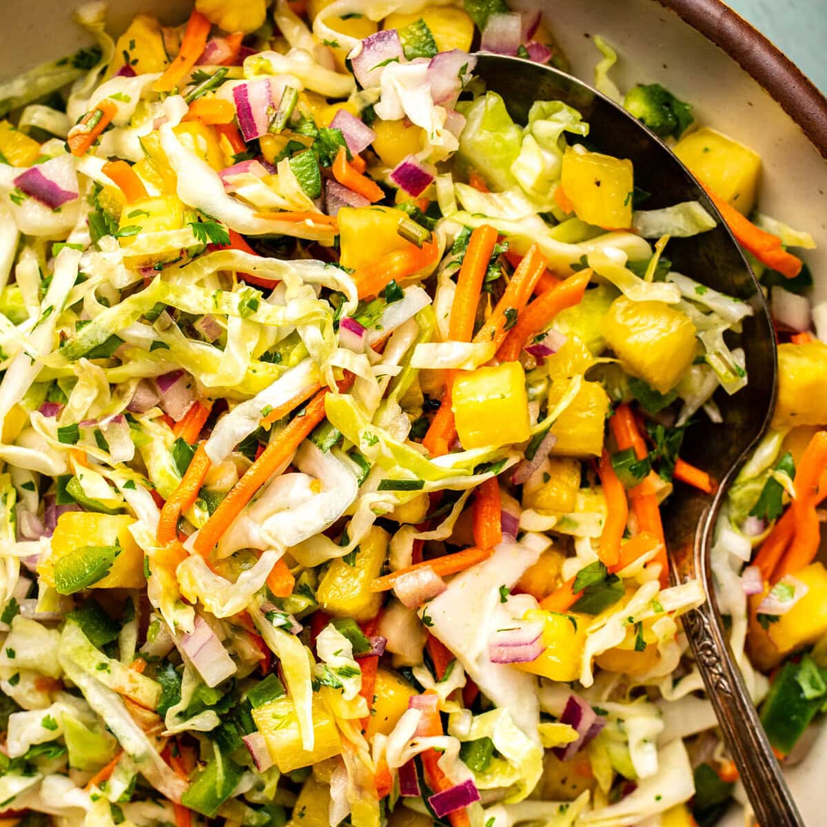 14. Pineapple Coleslaw Coleslaw is one of the most common cold sides, or at least in Iowa. Try some pineapple coleslaw from From My Bowl.