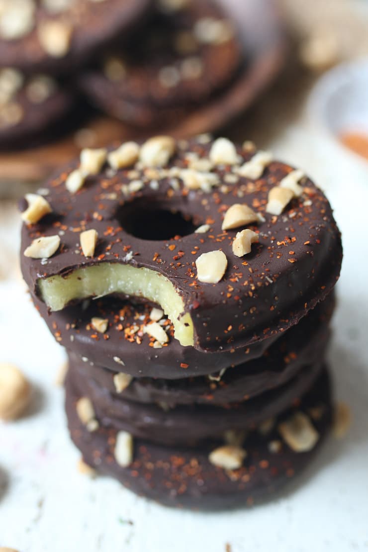 Make your summer a little sweeter with these easy vegan pineapple chocolate donuts topped with tajin, cashews and fleur de sel.