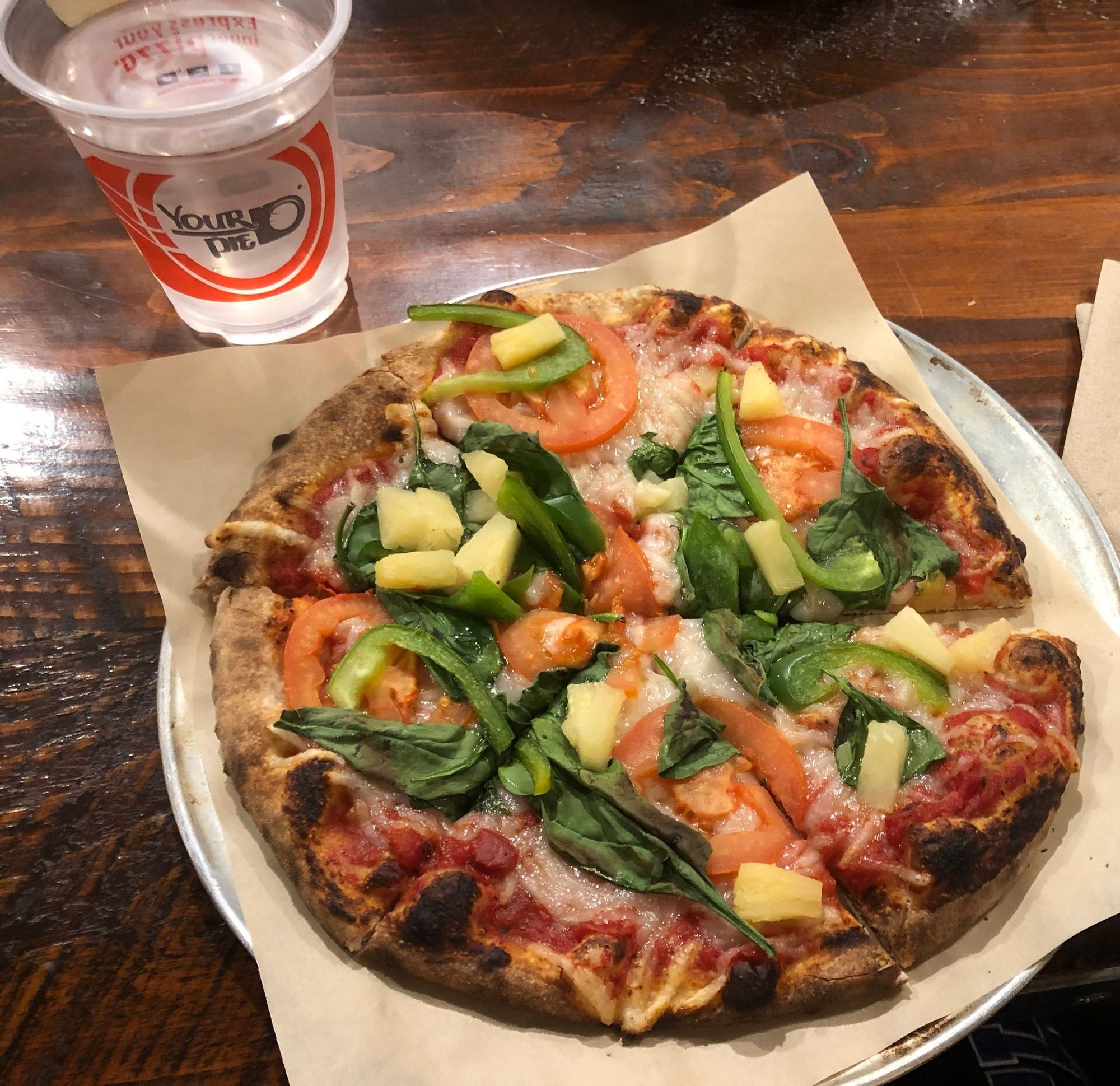 My family and I went to Your Pie once when my youngest brother was dating his first girlfriend. It’s mainly in the Southeast, but four are in Iowa (Waterloo, Marion, Dubuque, and Davenport). It was pretty good. In terms of pizza, Your Pie has vegan cheese, sausage, veggie toppings, and one regular pizza order. You can also get vegan sorbet and create-your-own pasta.