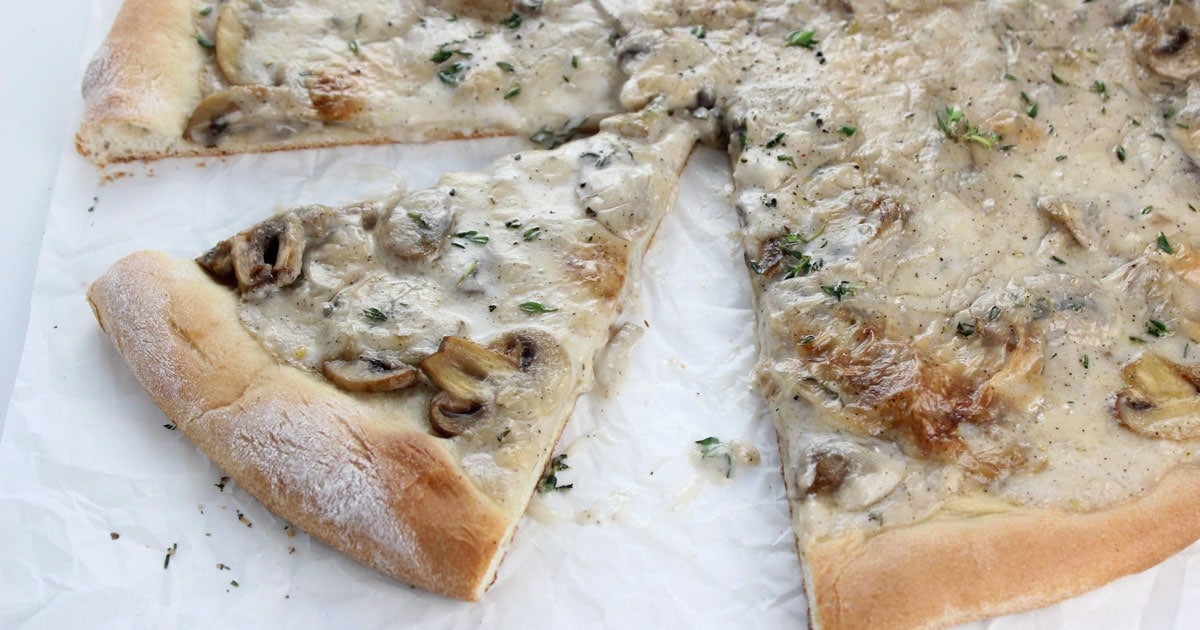 Sam from It Doesn’t Taste Like Chicken shares a great twist to the mushroom pizza. Instead of having a mushroom pizza with cheese and tomato sauce, she skips the cheese and uses a creamy coconut sauce.