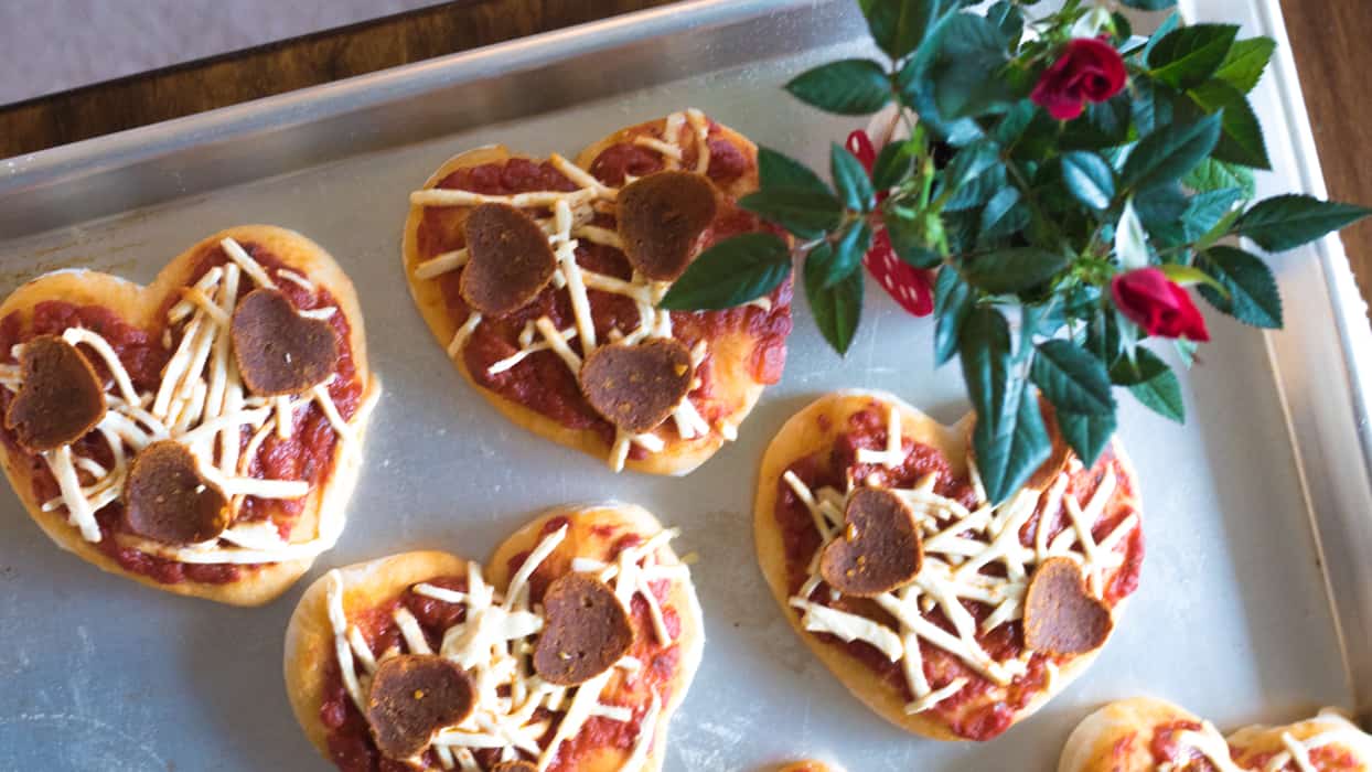 Do you and your lover want to eat in some time? Express how much you love them with these vegan, heart-shaped mini pepperoni pizzas from World of Vegan.