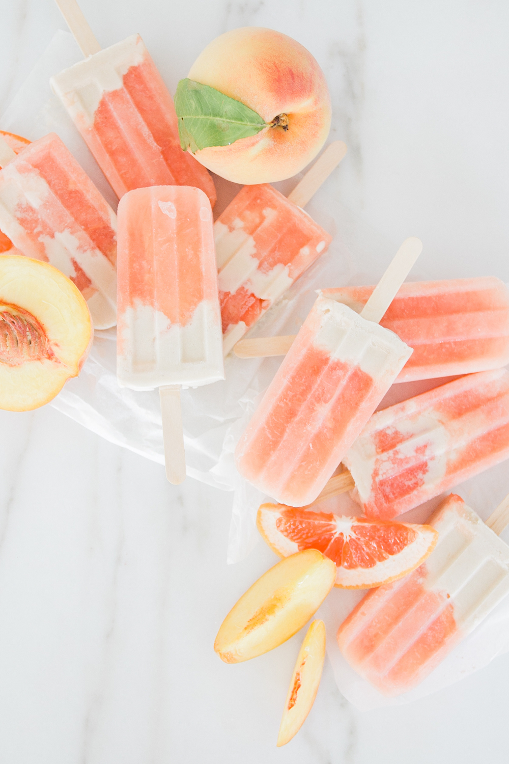 18. Grapefruit and Peach Cream Popsicles Monika Hibbs lets you choose between two popsicle recipes: grapefruit cream popsicles and peaches and cream popsicles . If you have a preference on which one you would pick, tell me that in the comments.