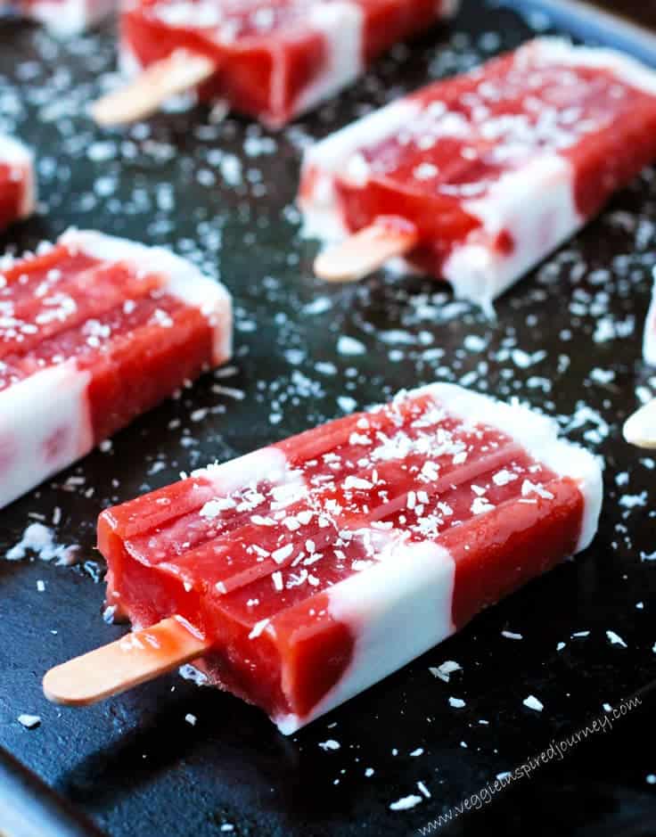 19. Strawberry Rhubarb Coconut Milk Popsicles Strawberry rhubarb is a popular summer flavor combo. For example, here are some strawberry rhubarb popsicles from Veggie Inspired.