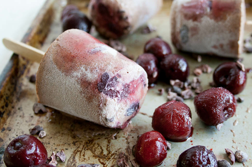 Chocolate Cherry Chia Pudding Popsicles