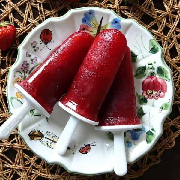 These beautiful Popsicles are the perfect summer treat with only 4 ingredients, including pomegranate juice and delicious sweet strawberries. A healthy frozen desserts that taste like heaven on a stick.