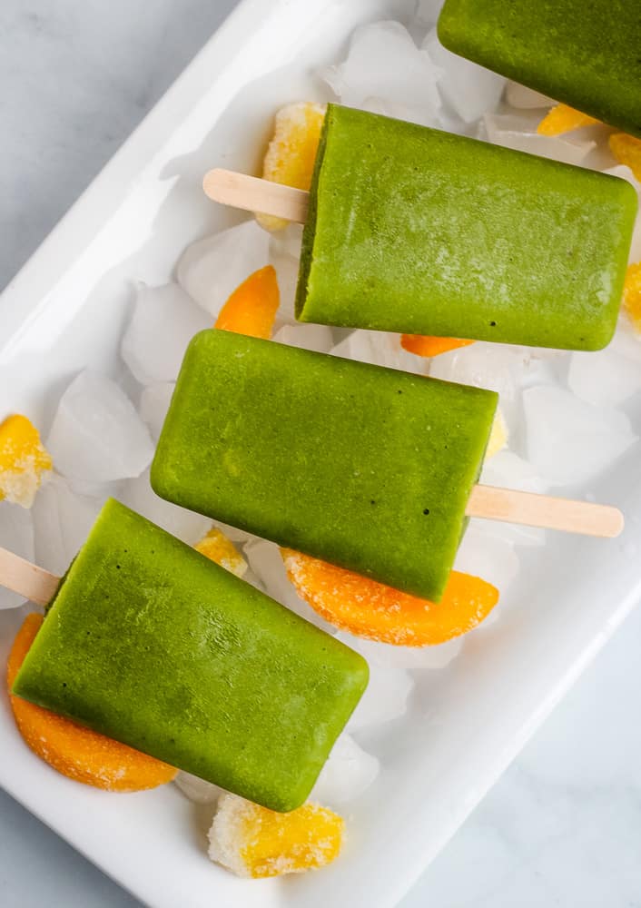 8. Spinach Mango Popsicles You can make green popsicles in addition to creating green smoothies. For example, here are some spinach mango popsicles from Keeping the Peas.