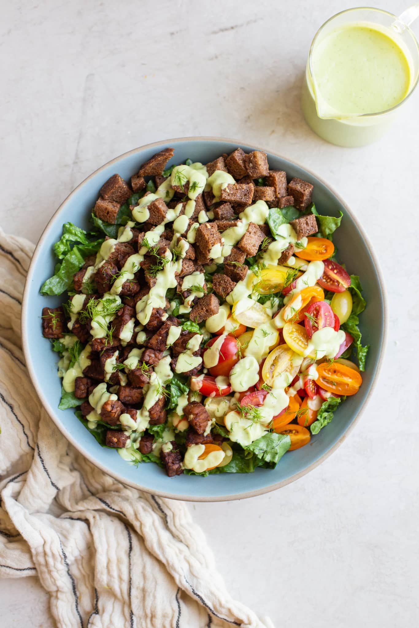 Vegan avocado ranch dressing replaces animal-based ingredients with plant-based alternatives, keeping the creamy texture and zesty-herby flavor that makes ranch a favorite.