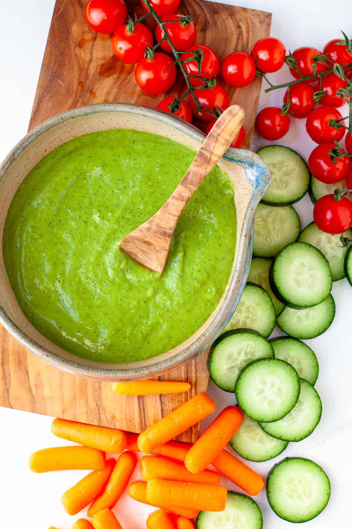 Avocado ranch dressing is a creamy, herby, tangy blend that combines the richness of avocado with the classic flavors of ranch dressing.