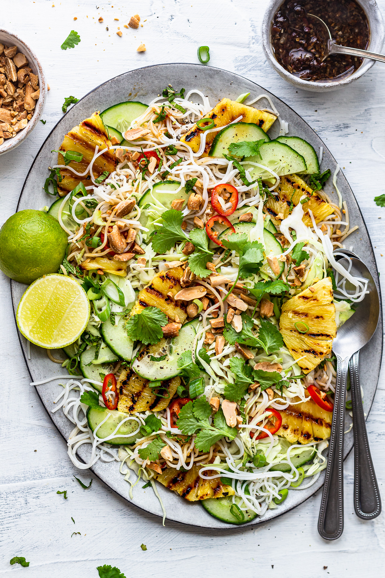 Thai pineapple salad is a plant-based and gluten-free noodle salad packed with texture and flavour. It’s easy to make, perfect for a summer BBQ.